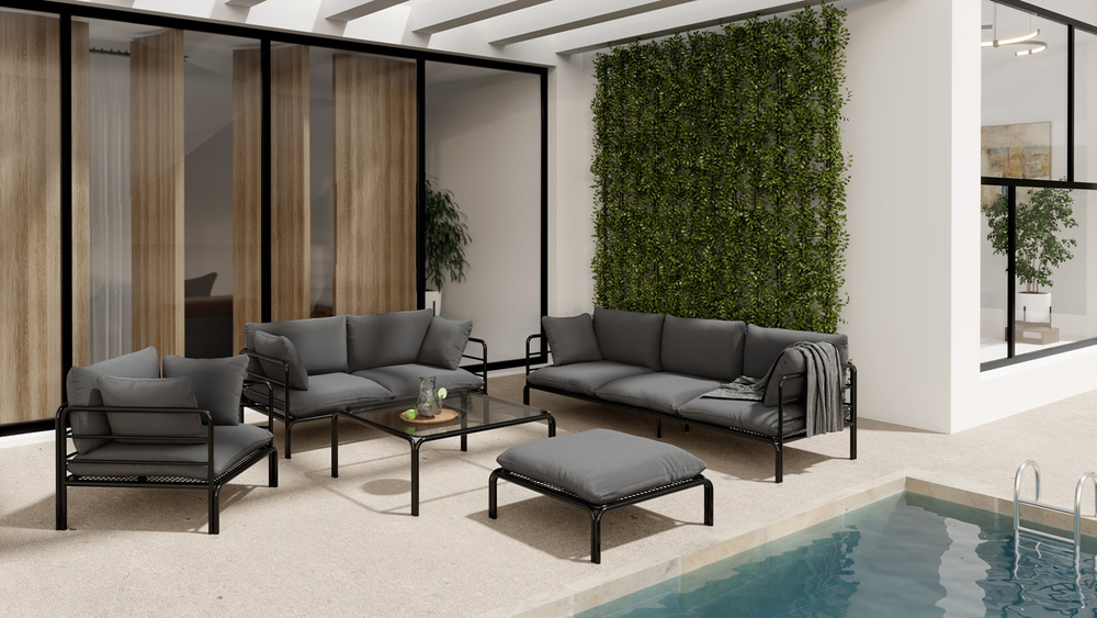 Denna utmärkta struktur är gjord av pulverlackerat stål, vilket garanterar hållbarhet och motståndskraft mot väderförhållanden under många årstider. Denna soffa väcker inte bara uppmärksamhet med sin moderna design, utan ger också exceptionell komfort tack vare bekväma kuddar. Tack vare två rymliga kuddar är vår grafit tvåsitssoffa perfekt för sommarmöten med vänner eller avkopplande stunder ensam. Oavsett om du planerar en picknick utomhus eller koppla av på uteplatsen på kvällen, kommer den här soffan att vara det perfekta tillägget till ditt utomhusutrymme.