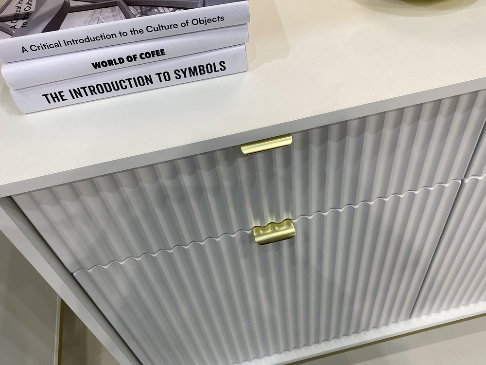 Minimalistiska handtag i gyllene färg tillför värde till möblerna och ökar inredningens prestige.