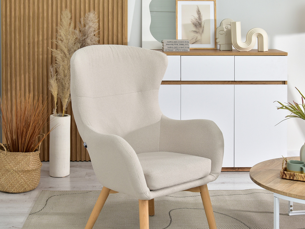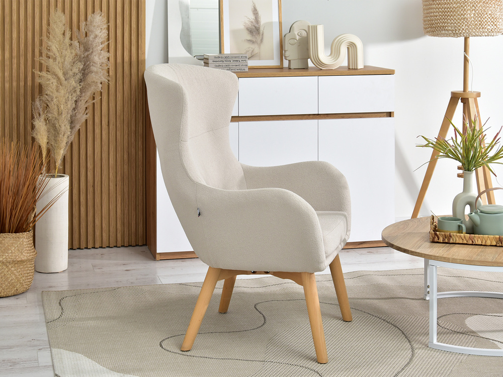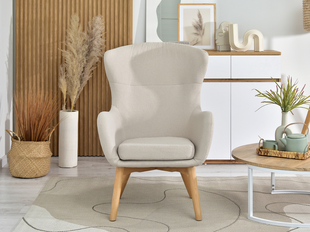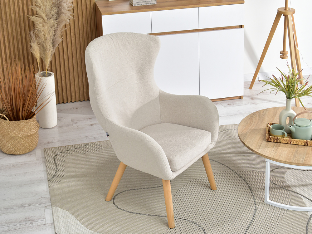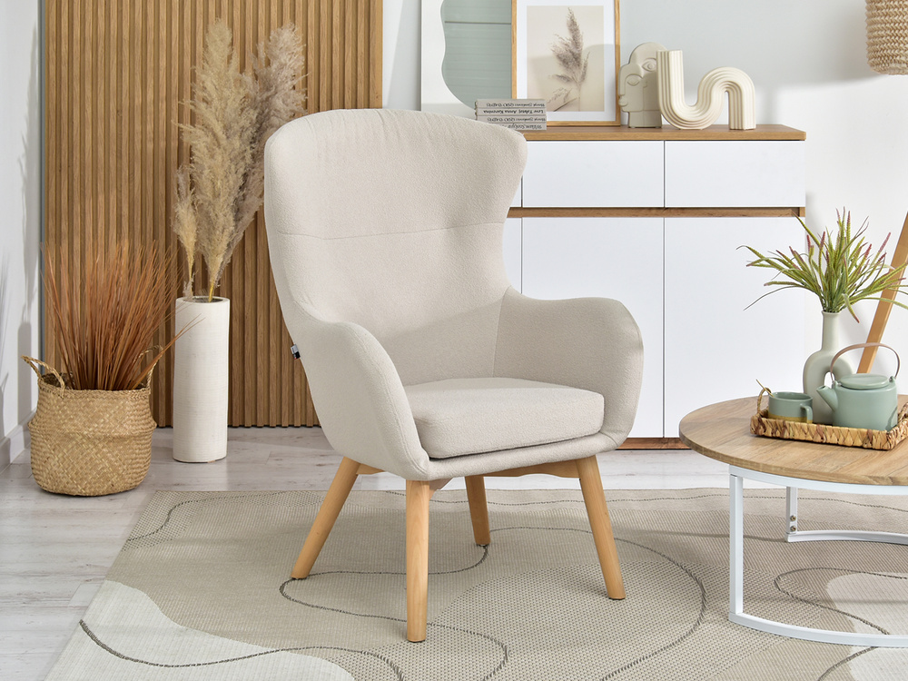 Den beige LETA-fåtöljen är den perfekta kombinationen av elegans och funktionalitet, som passar perfekt in i alla interiörer. Tack vare ben i bok och modern design är denna stol inte bara snygg, utan också extremt hållbar och stabil. Dess beiga säte tillverkad av högkvalitativt tyg och stoppningsskum för att säkerställa högsta möjliga komfort.