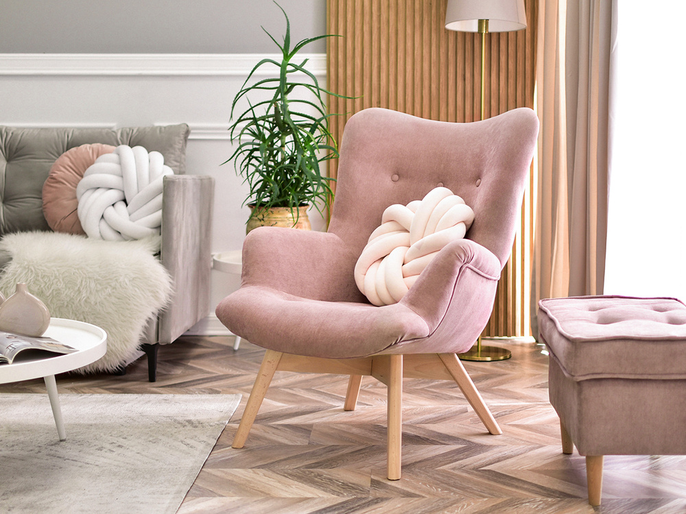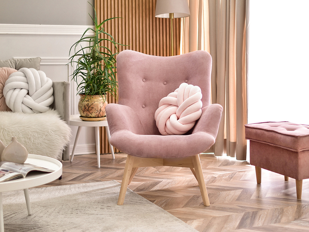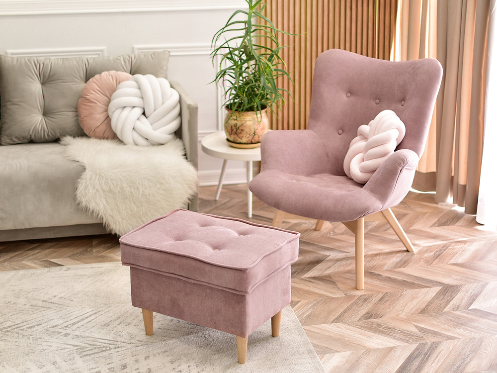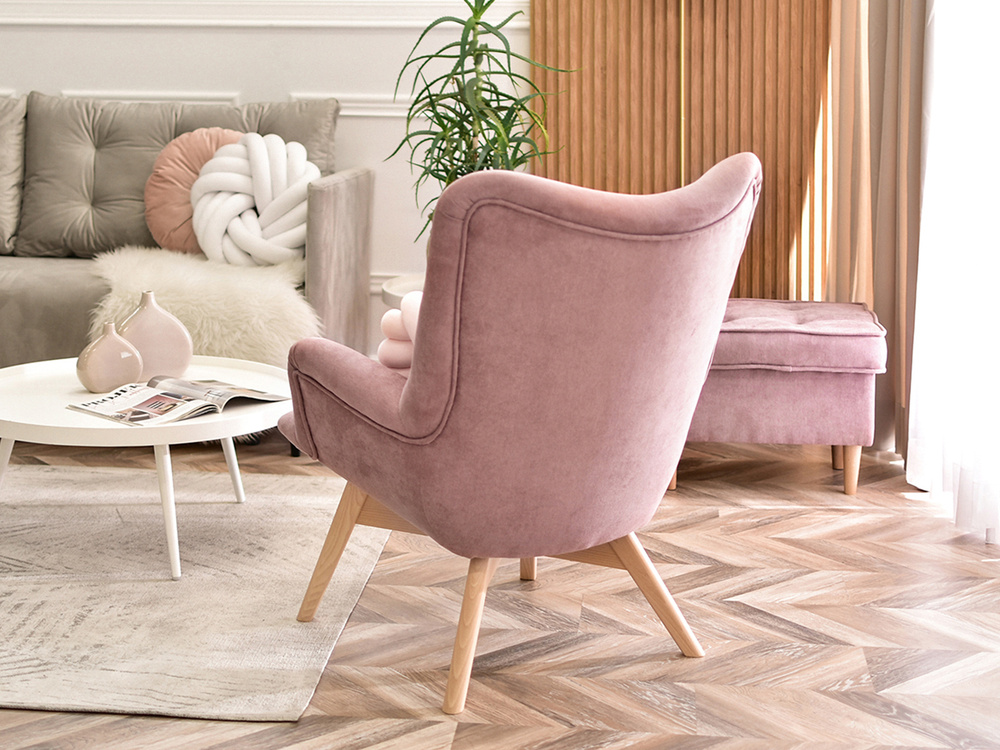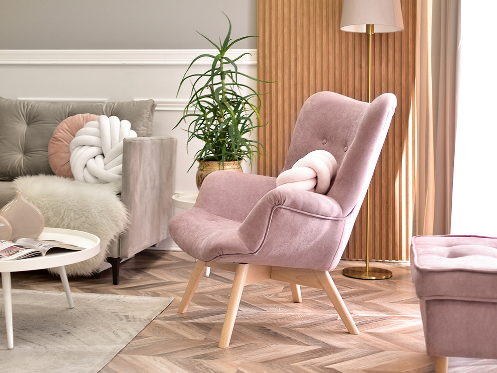 FLORI fåtölj är inte bara en möbel, utan också ett dekorativt element som kommer att betona karaktären hos varje interiör. Dess puderfärg ger en känsla av finess och subtilitet, och ben i bok tillför naturlig värme. Tack vare sin mångsidighet fungerar denna fåtölj i en mängd olika rum och erbjuder komfort och stil på högsta nivå.