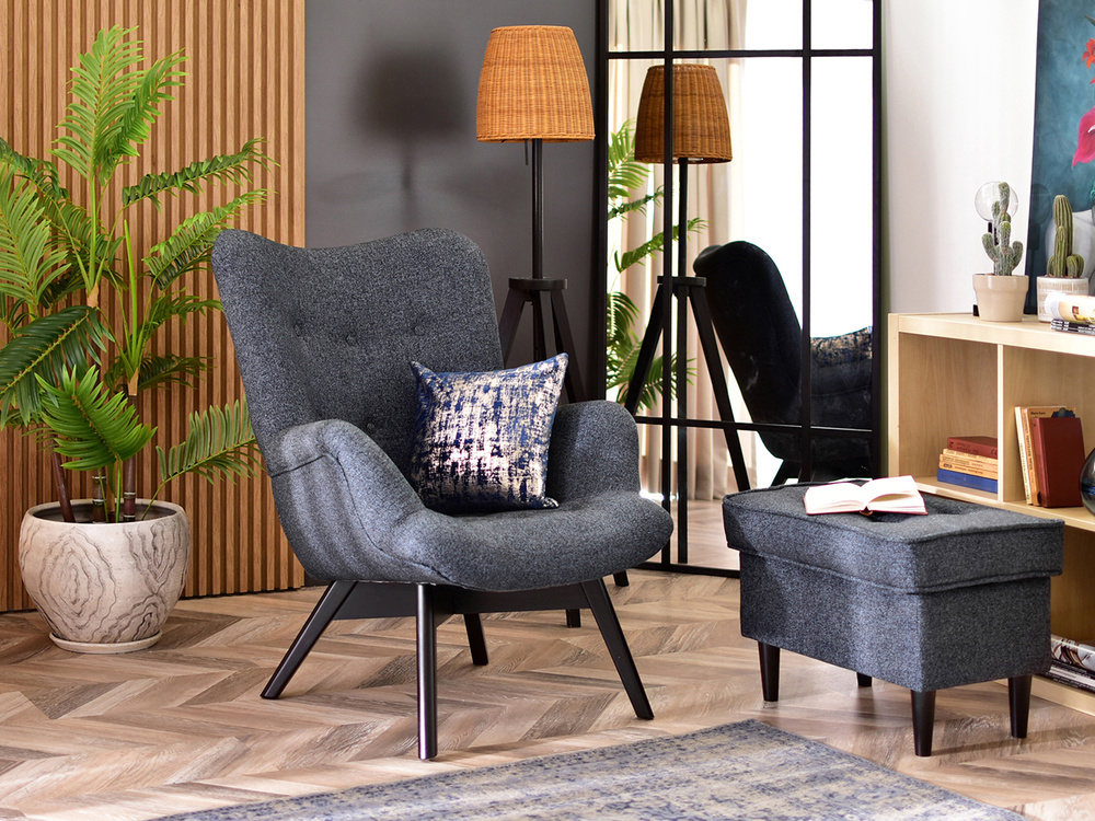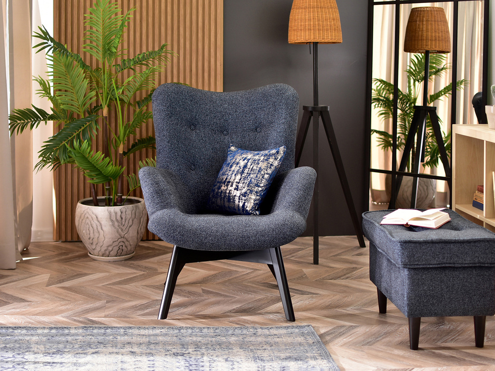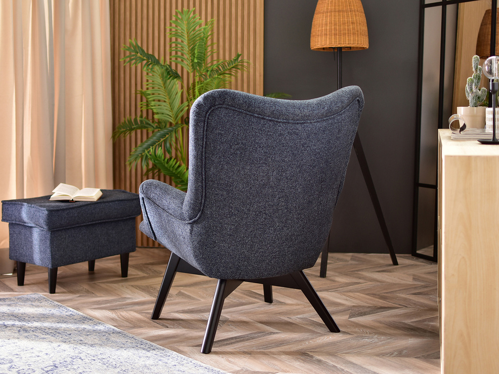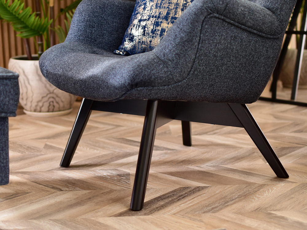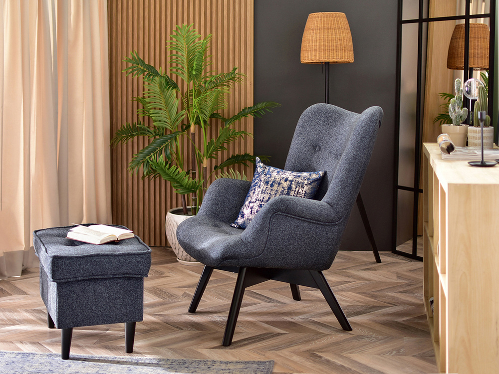 Stoppad fåtölj marinblå/grå svarta ben FLORI