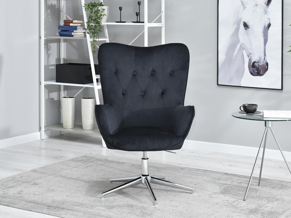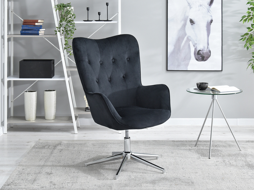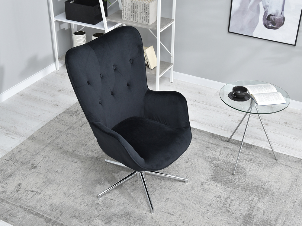Velour fåtölj svart krom TRINI ben