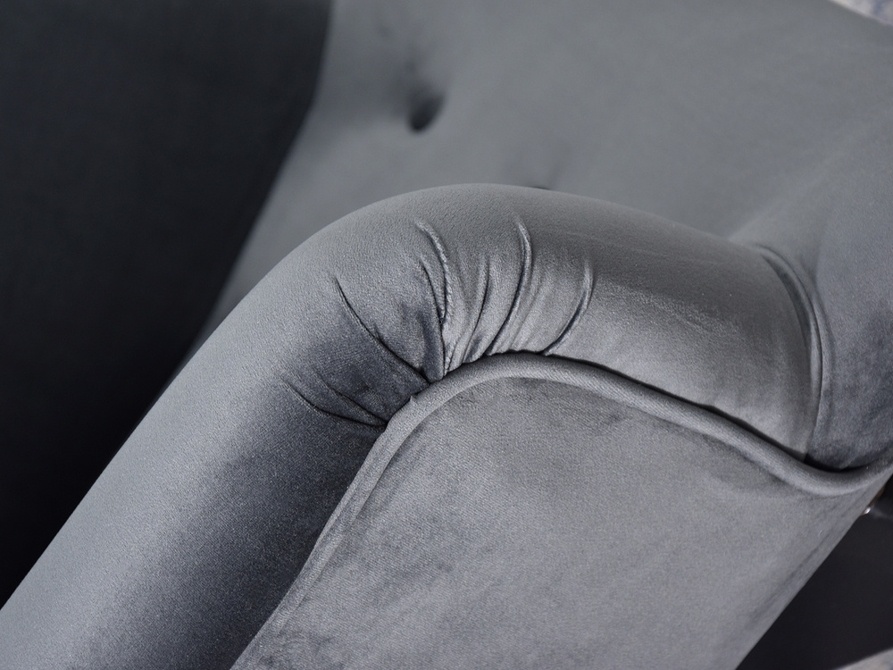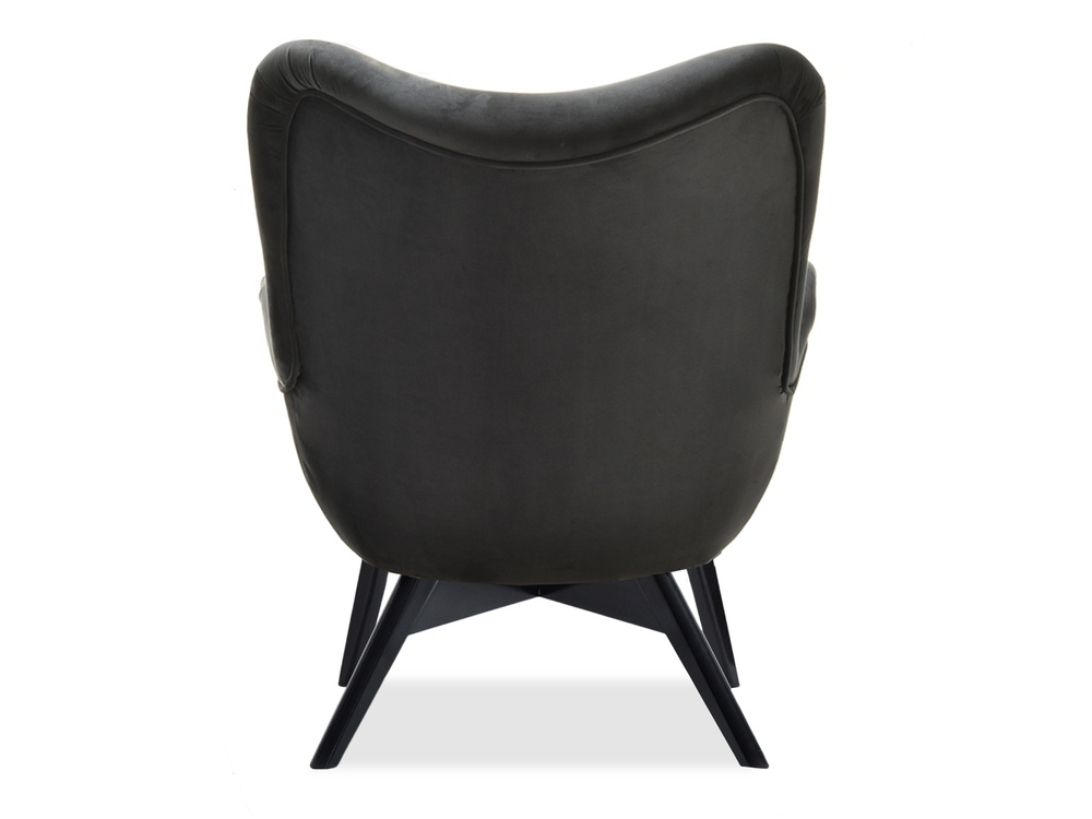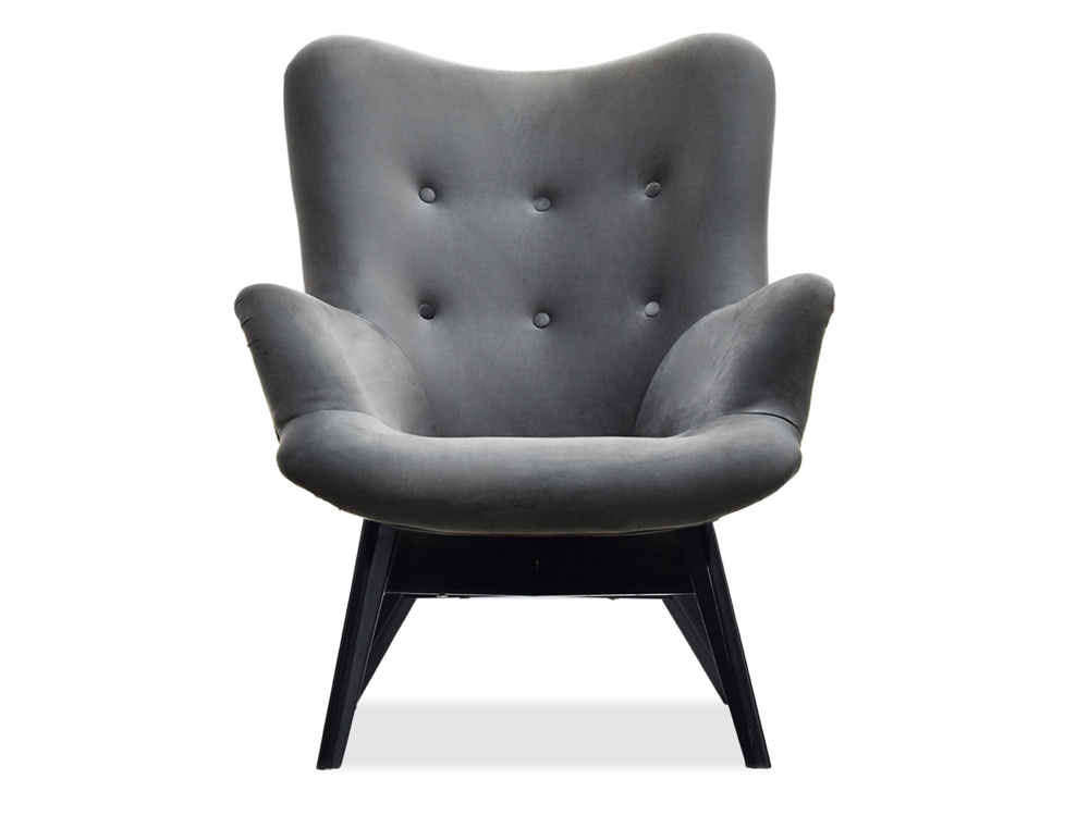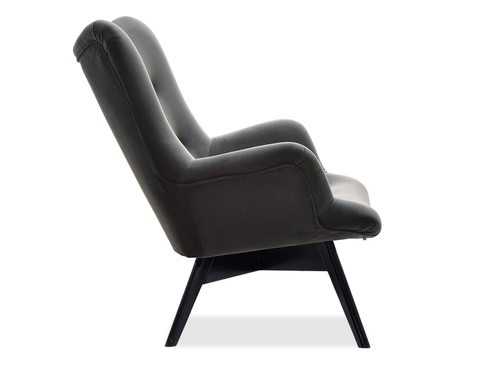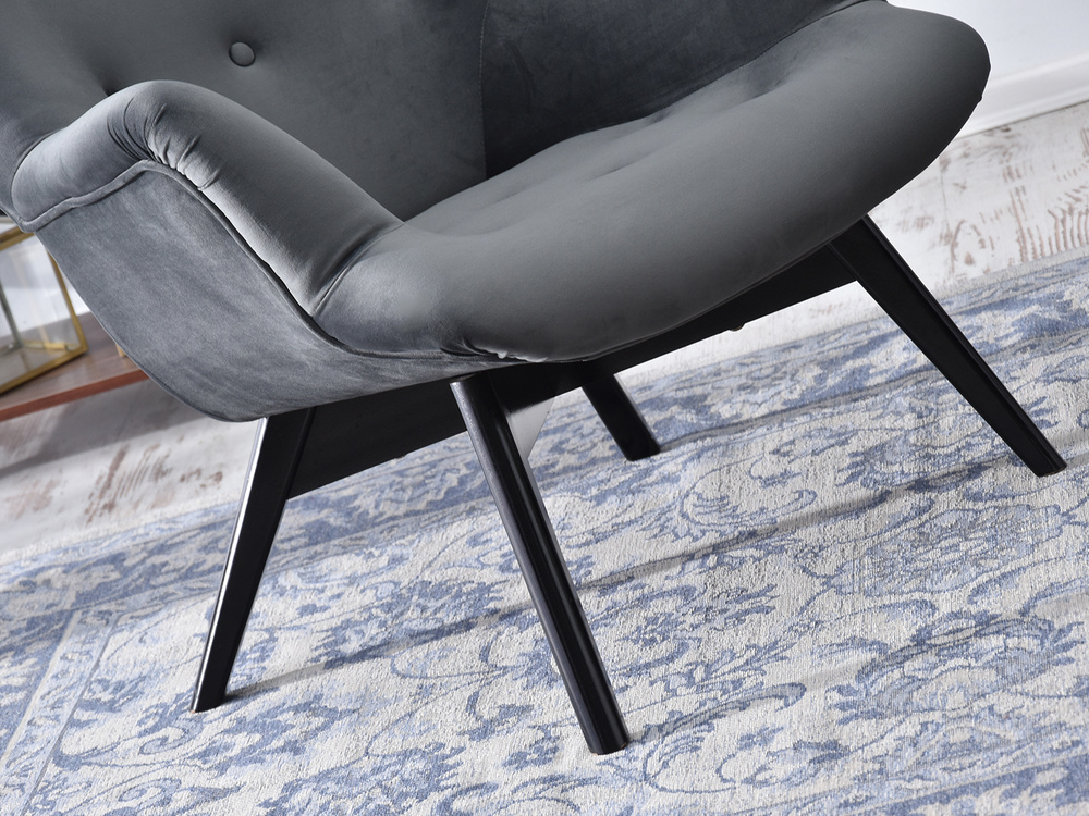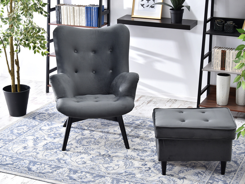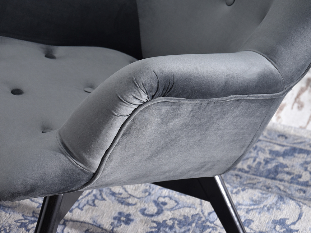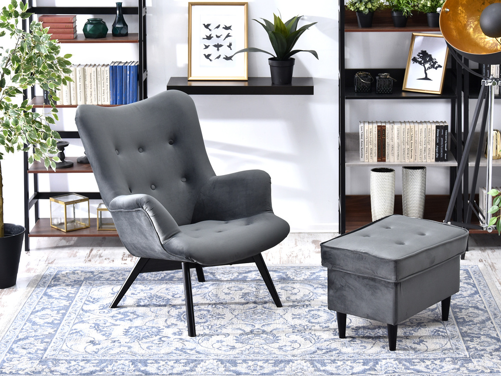 Velourfåtölj grå svart ben FLORI