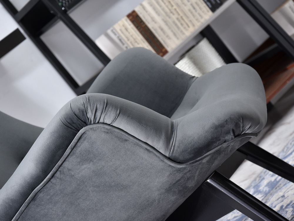 Fåtölj i grå velour med svarta ben FLORI är den perfekta kombinationen av elegans och funktionalitet, som passar perfekt in i alla inredningar. Tack vare industriell och modern stil, denna fåtölj kommer att bli ett unikt dekorativt element i ditt hem eller kontor.