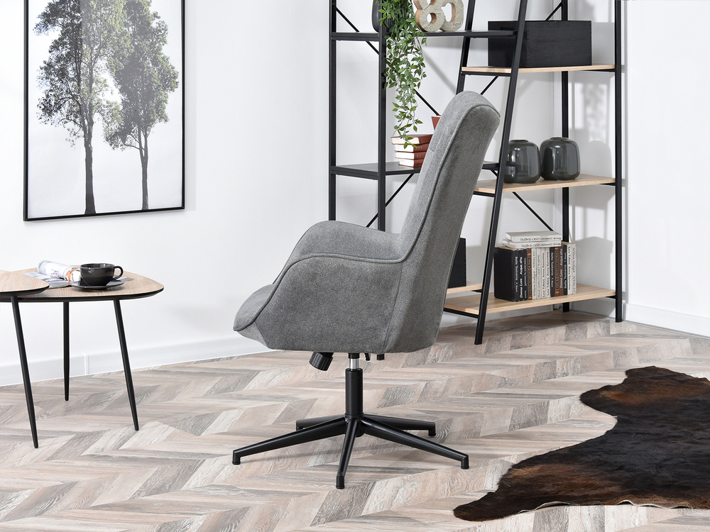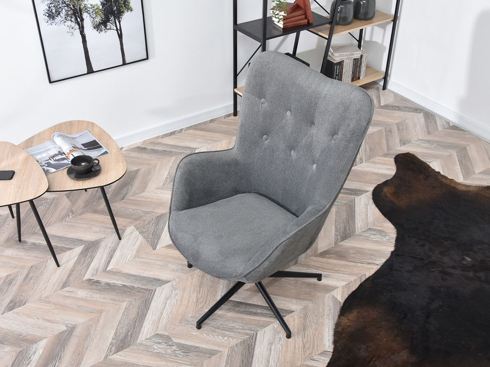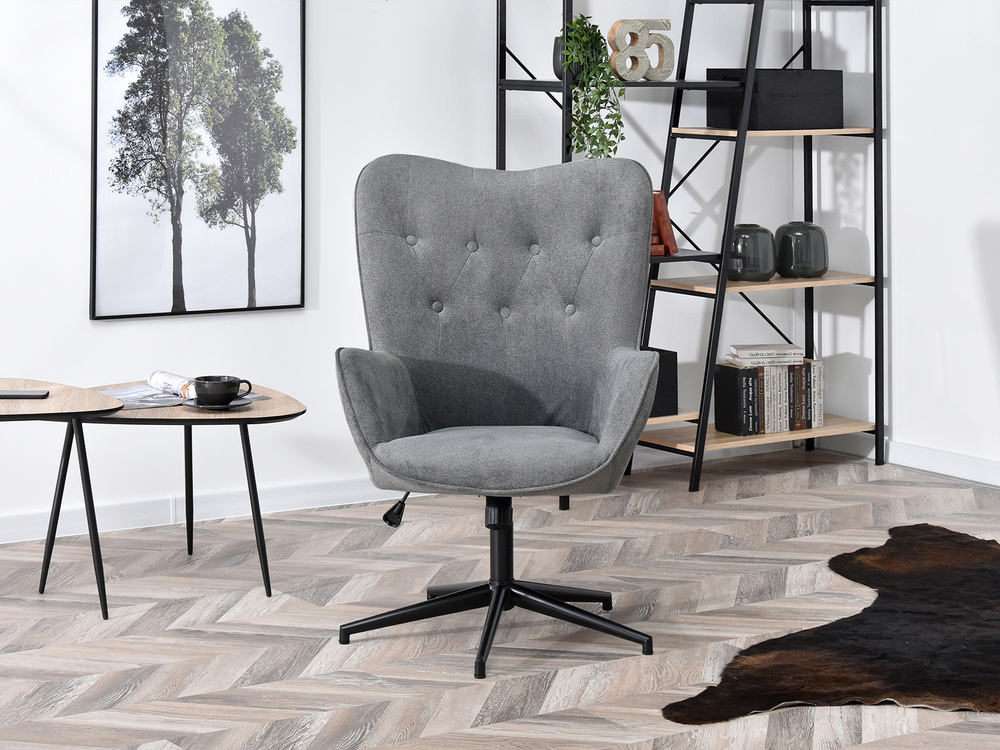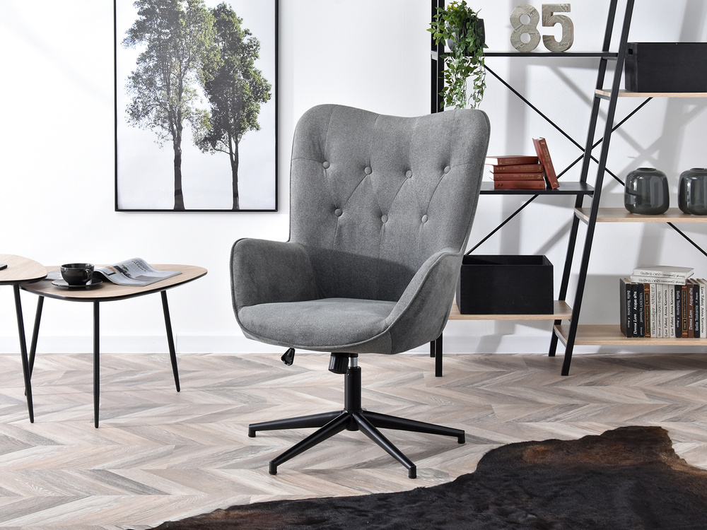 TRINI-fåtöljen är ett utmärkt val för kontor,servicelokaler,studios hemma, såväl som till showroom om sovrum. Dess grå sitsfärg kombinerat med svart bas skapar en elegant och mångsidig design som passar in i alla interiörer.