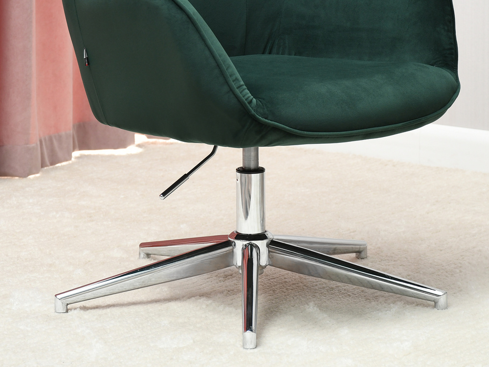 TRINI fåtölj är inte bara en möbel utan också ett dekorativt element som kommer att betona karaktären hos varje interiör. Dess gröna färg sätena ger en fräsch och modern känsla, medan kromad bas tillför elegans. Tack vare att stolen kan justeras i höjdled är den extremt mångsidig och kan anpassas till olika användares behov.
