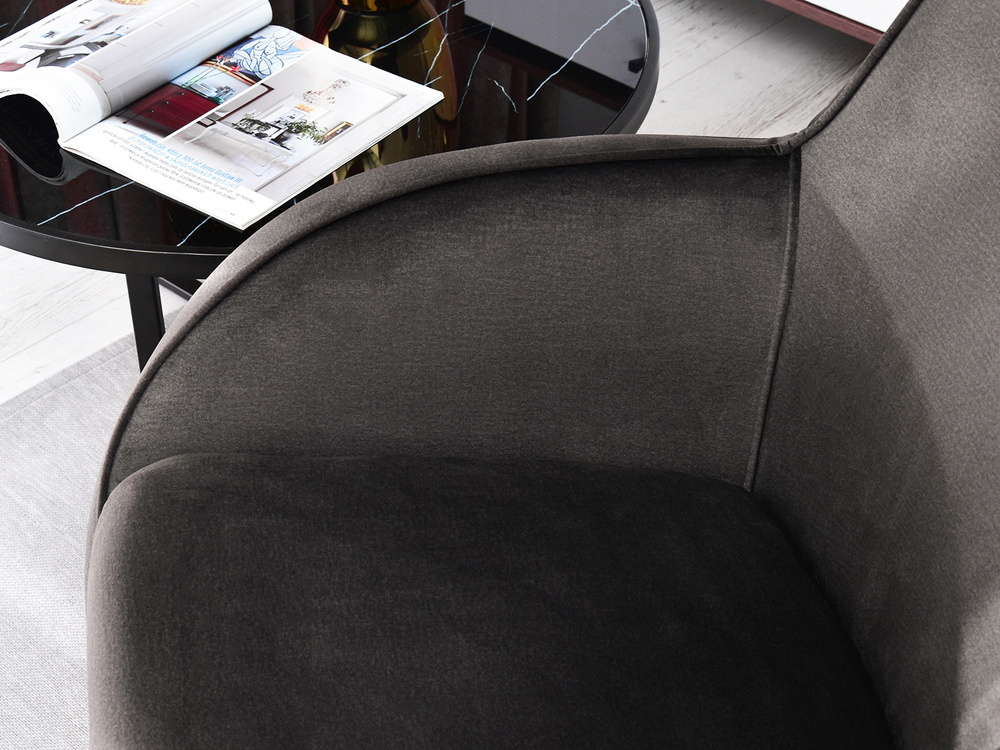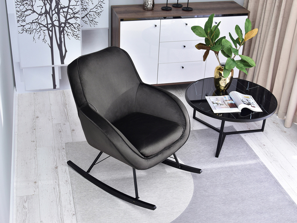 • Högkvalitativa material - sits av mjukt stoppningsskum klädd i elegant velour, underrede av slitstarkt trä och metall.