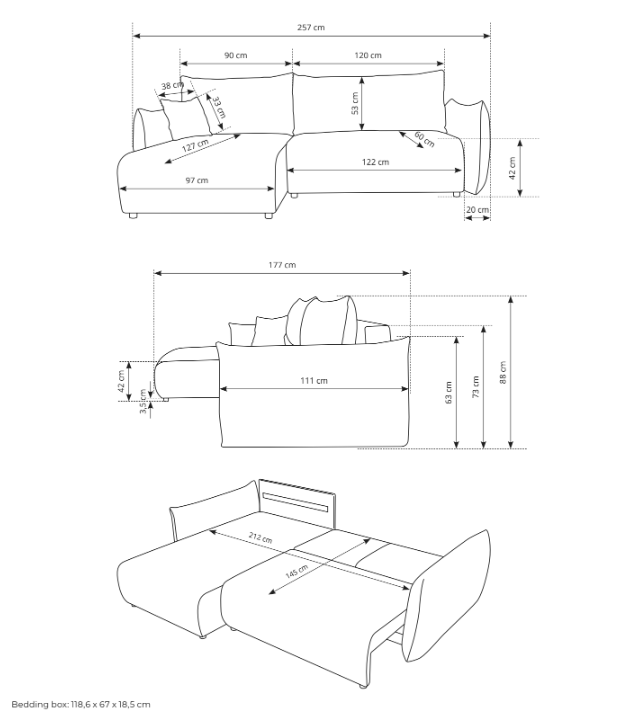 - sovyta: 212 x 145 cm