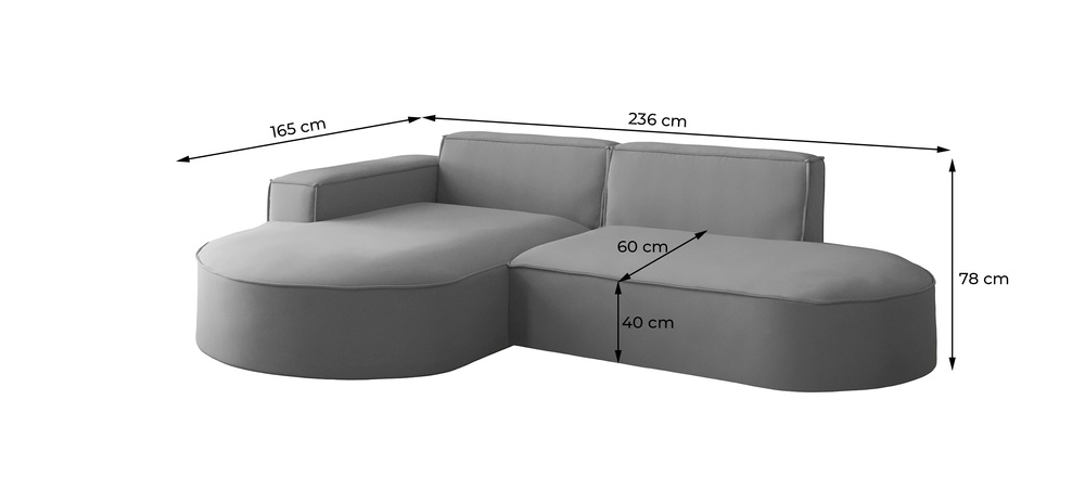 Denna unika hörnsoffa för vardagsrummet är ett bra sätt att skapa ett utrymme för avkoppling i rummet. Den breda sitsen på denna hörnsoffa är fylld med polyuretanskum av högsta kvalitet och vågfjädrar, och ryggstödet är exceptionellt mjukt, vilket kommer att svepa in din kropp och hjälpa dig att slappna av. Alla rundade kanter skapar ett mjukt och mysigt intryck.