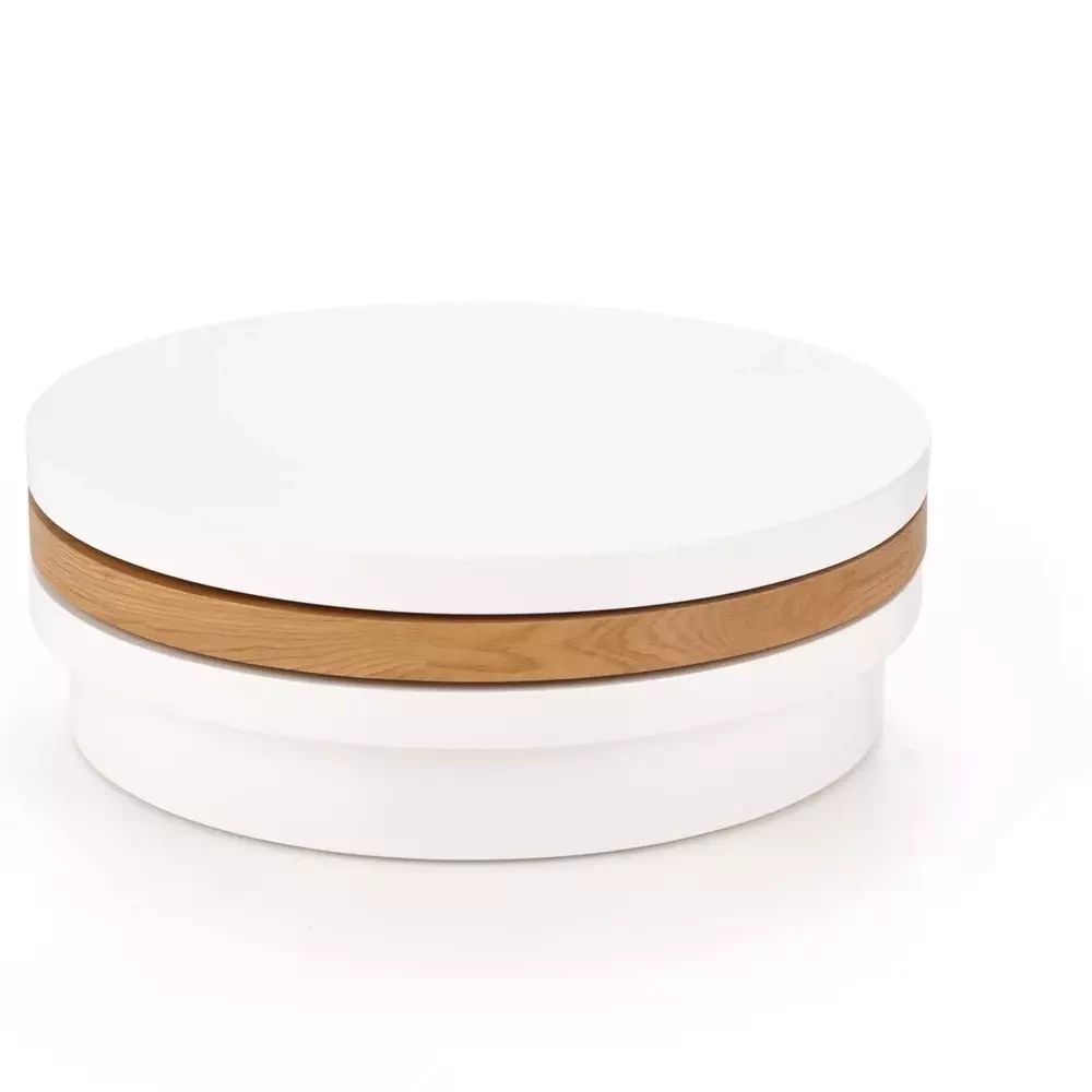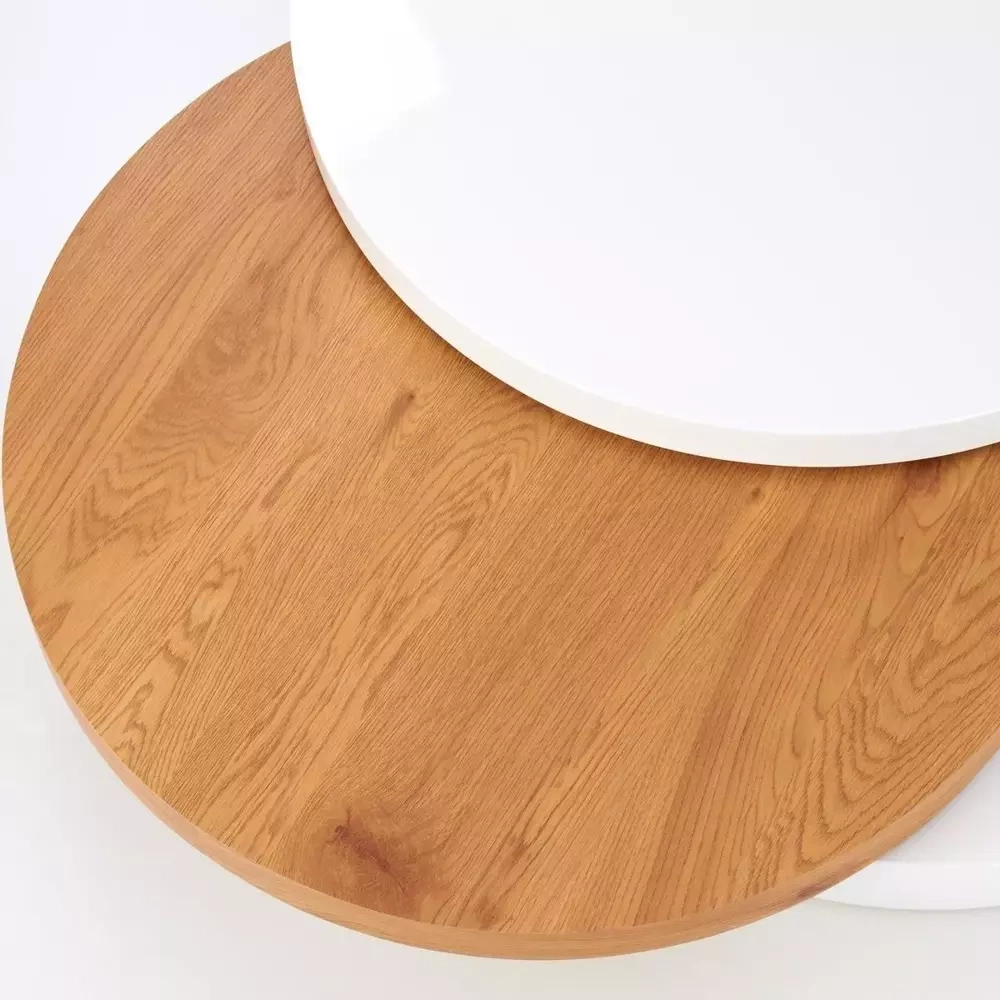 Soffbord Michelle är tillverkad av lackerad MDF-skiva i vit och lackerad MDF-skiva i gyllene ek färg.