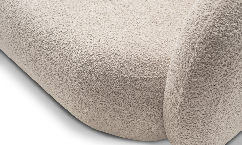 - Abriamo-tyg – ett tjockt bouclé-tyg som ger soffan ett lyxigt utseende.