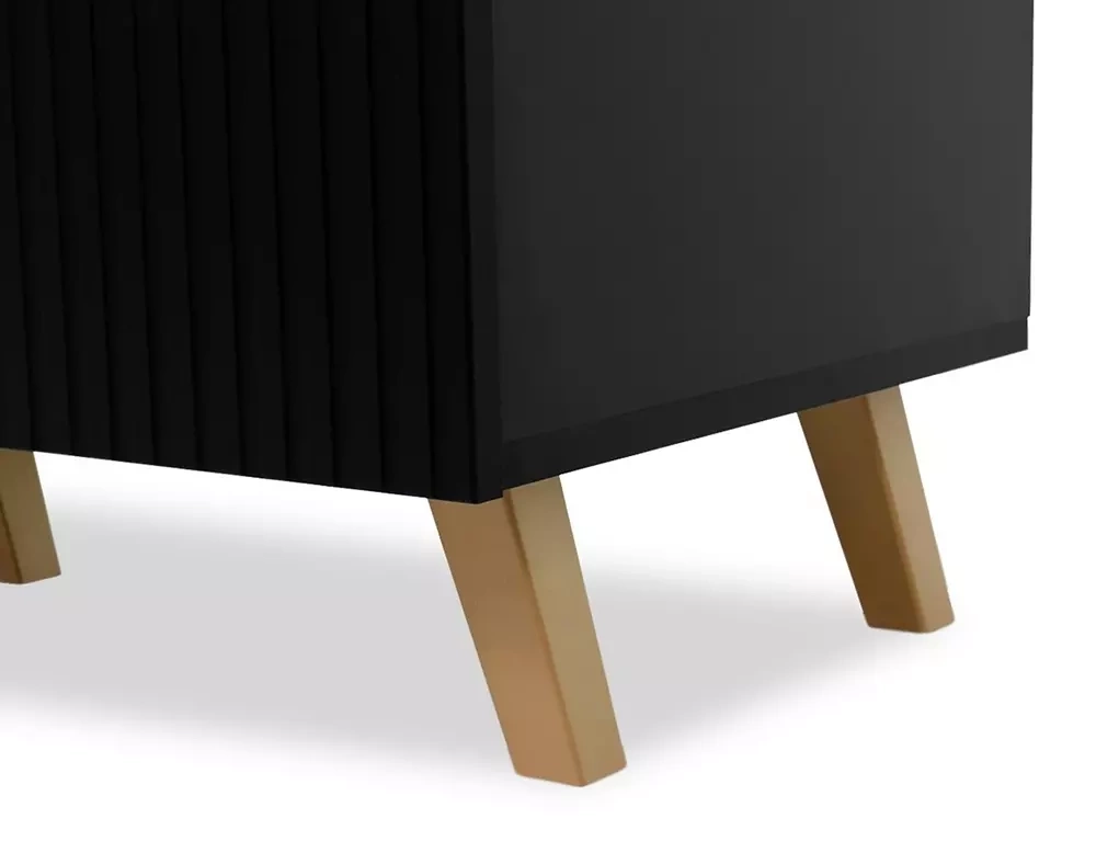 De svarta plastbenen bidrar också till det innovativa utseendet på denna tv bänk.